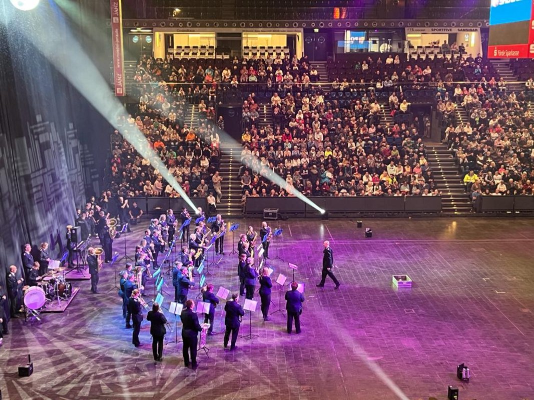 Übrigens durften sich die Musikerinnen und Musiker in der Wunderino Arena in Kiel zweimal pro Show präsentieren. Bereits eine halbe Stunde vor dem Beginn der Shows wurden die Zuschauer mit moderner Blasmusik empfangen. Mit Stücken wie Wellermann, Nessaja, Sweet Caroline oder auch einem Medley mit Hits der schwedischen Popgruppe ABBA wurden alle Gäste gleich in die richtige Stimmung versetzt, bevor der langjährige Moderator der Kieler Polizei Show Ingo Oschmann die Show offiziell eröffnete.