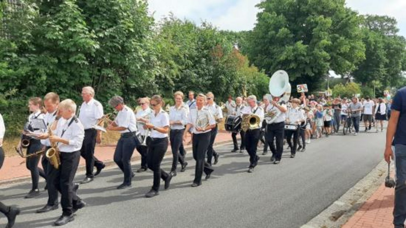 Der Grundschule in Westerrönfeld bei Rendsburg war es trotz intensiver Bemühungen im Vorfeld nicht gelungen, einen örtlichen Musikzug für den Umzug ihres jährlichen Vogelschießens zu gewinnen. Ganz nach dem Motto „Zusammen schaffen wir das“ war dieser Fall genau richtig für die neu gegründete Truppe. Die Marschmusikgruppe im KFV Rendsburg-Eckernförde ist ein Zusammenschluss von Musikerinnen und Musikern aus fast allen Feuerwehrmusikzügen im Kreis. „Viele Musikzüge können nicht mehr allein zu Umzügen losmarschieren, da die Personaldecke an marschierfähigen Musikerinnen und Musiker einfach zu dünn geworden ist. Corona hat da noch mal den Rest gegeben“, erklärt der Kreismusikfachwart Dirk Rathmann. So wurde die Idee einer überörtlichen kreisweiten Marschgruppe geboren. Per Entsendungsprinzip treten die Musizierenden aus ihren Heimatmusikzügen der Kreisgruppe bei.